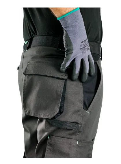 Il Pantalone Multitasche Top Eur Evo rappresenta l’evoluzione della linea classica di abbigliamento da lavoro, combinando un design moderno con una composizione tessile innovativa. Realizzato in 97% cotone e 3% elastan, offre un'eccezionale elasticità, garantendo libertà di movimento e comfort durante le attività quotidiane in ambienti lavorativi come officine, magazzini e trasporti.