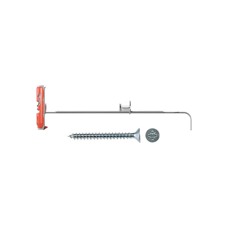 Utilizzare una punta standard da 10 mm per praticare il foro. Inserire il tassello, l'elemento basculante ruoterà automaticamente dietro il pannello, garantendo una presa sicura. Adatto anche per pareti isolate con lana minerale o intercapedini di grande spessore.