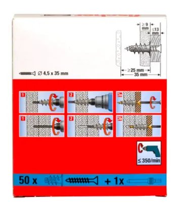 Incluso nella confezione | 50 tasselli GK S, 50 viti truciolari |