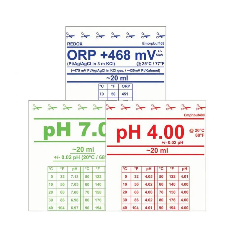 - 2 confezioni da 20 ml di soluzione tampone monouso di ORP 468 mV