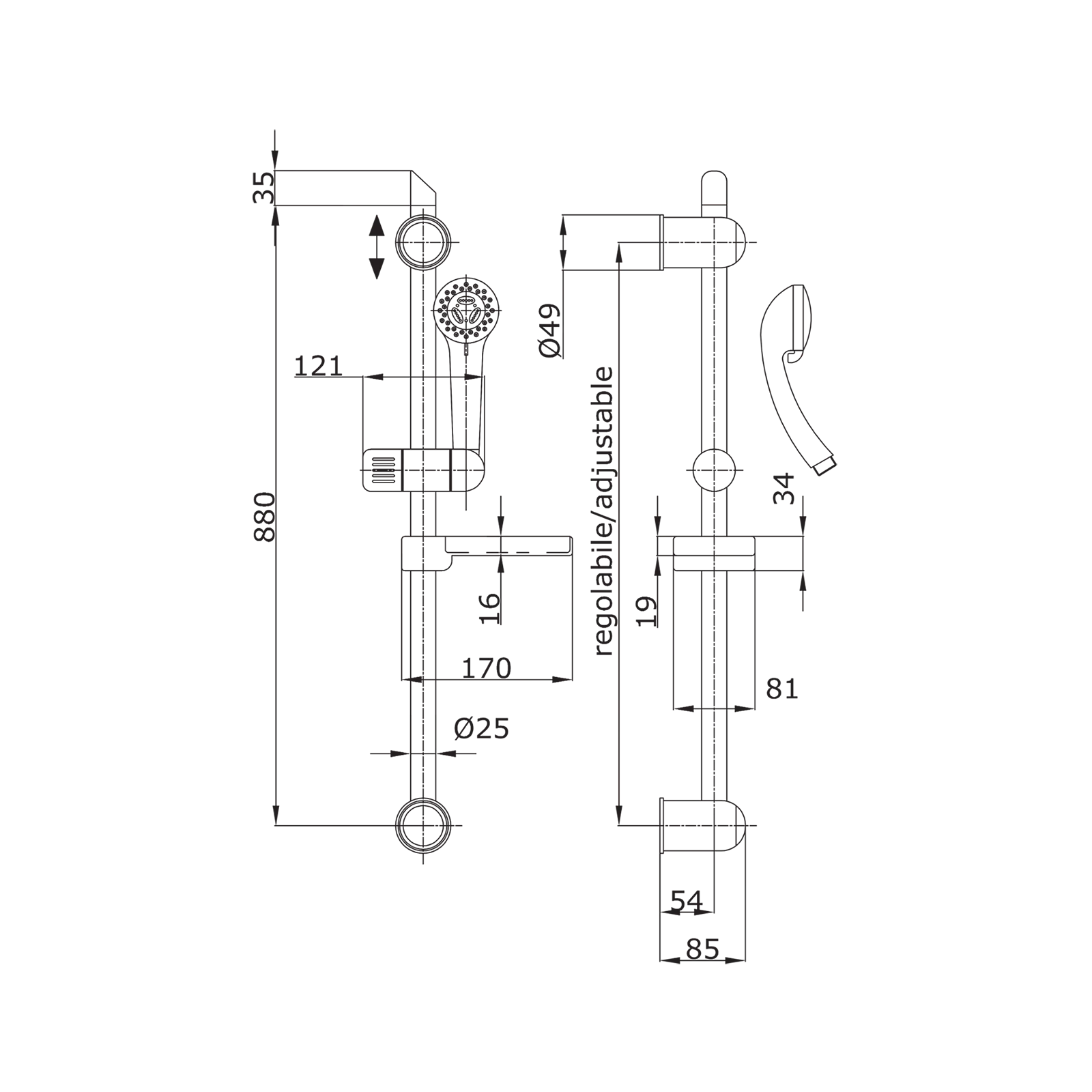 SALISCENDI REGOLABILE CON DOCCETTA E PORTASAPONE